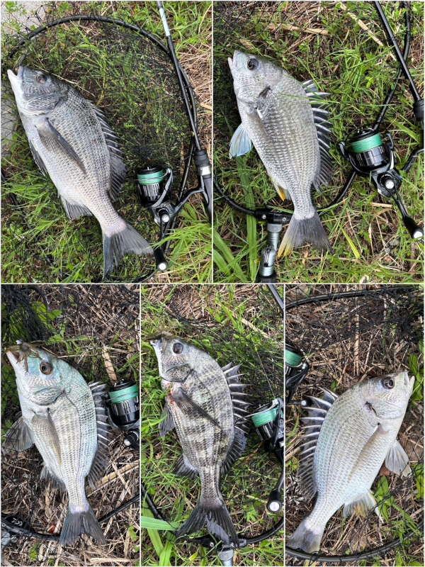 5回キャストして5匹のチヌをキャッチ